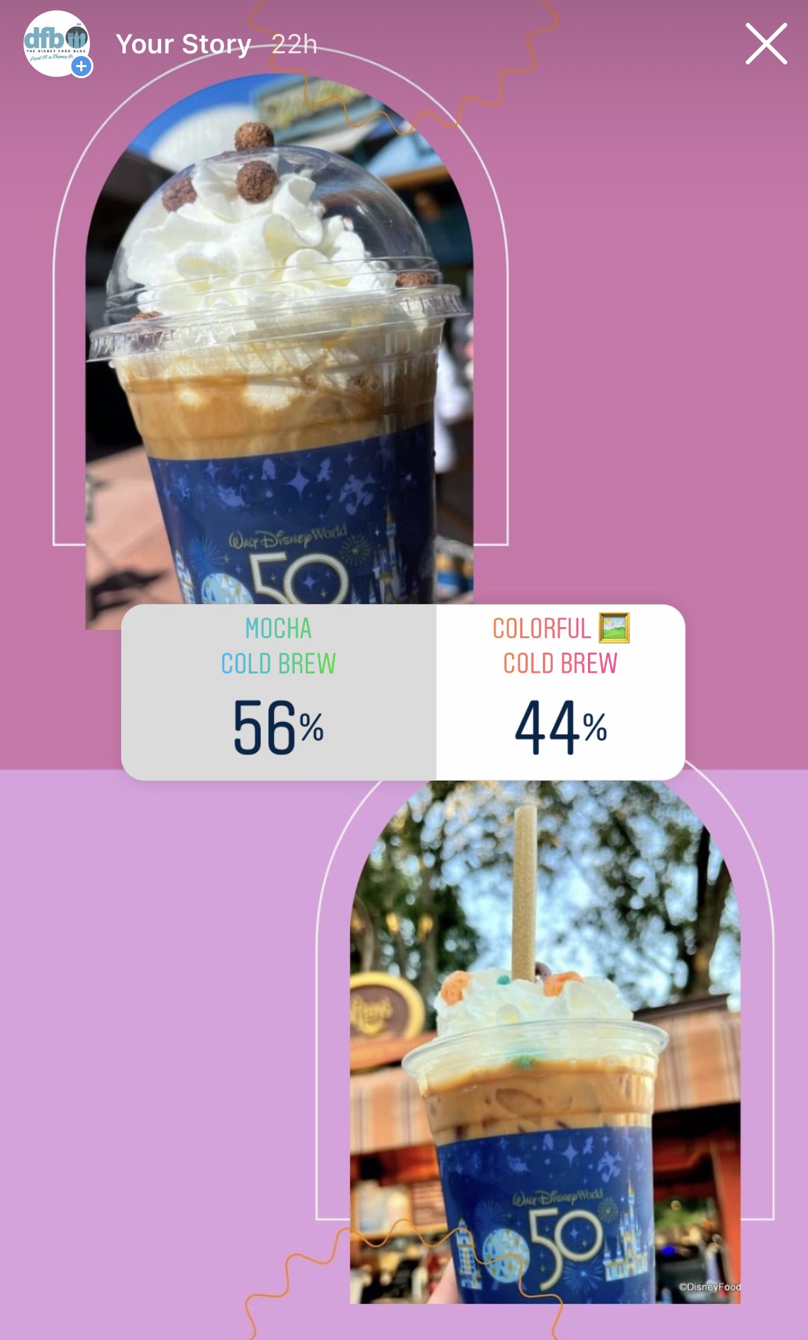 Now it’s time for some COFFEE! In this battle we have the Mocha Cold Brew versus the Colorful Cold Brew, each from different Joffrey’s Coffee & Tea Company kiosks in the park. The winner here was the Mocha Cold Brew — which would you pick?