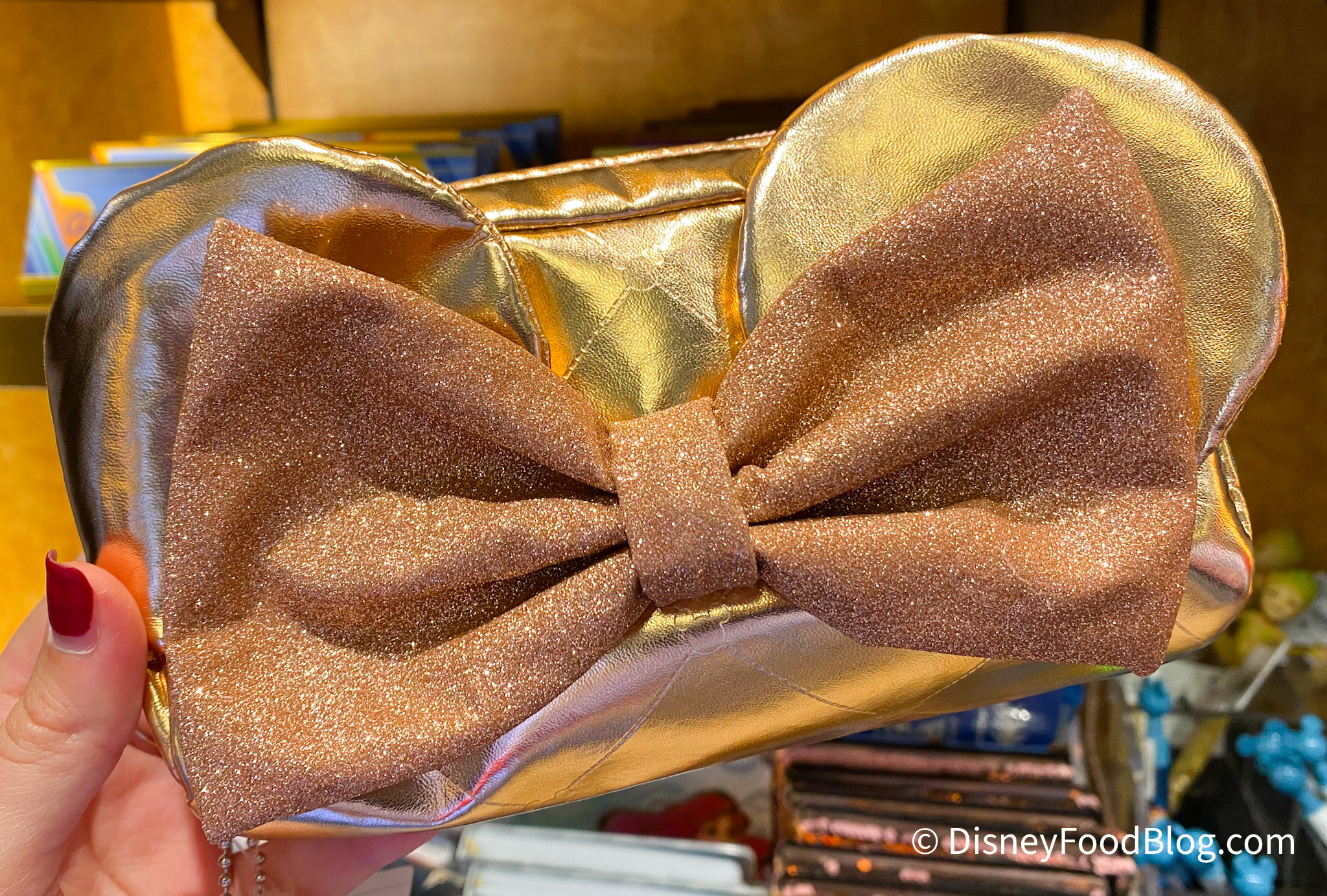 We also found two pencil cases to carry all of your essentials to school or work, each retailing for $14.99. The first is this glittery gold case with Minnie Ears, bow and all!
