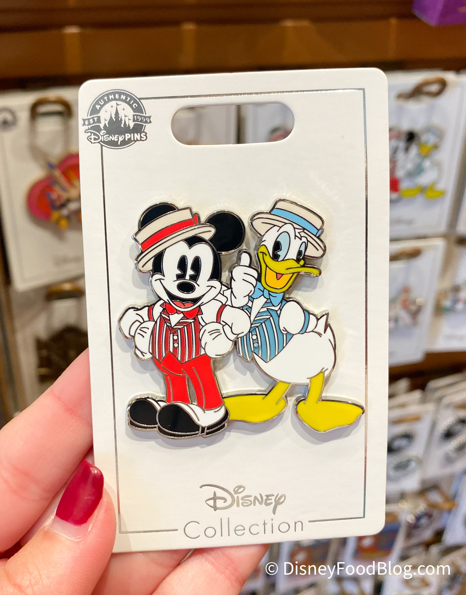 Over in Dark Room, we spotted THREE pins each selling or $9.99 — and a couple of them feature characters you don’t typically see on merchandise! The first is this cute Dapper Dans pin with Mickey and Donald.