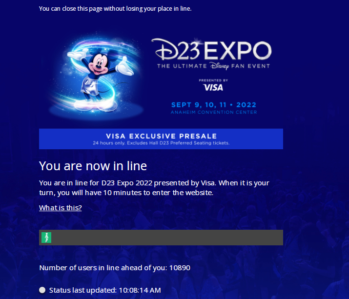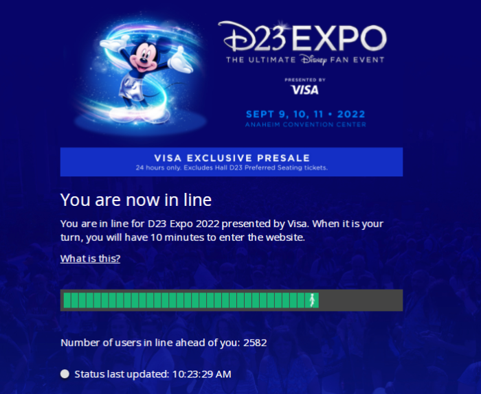 UPDATE: ALL of the tickets for the Visa pre-sale for the D23 Expo have now sold out!