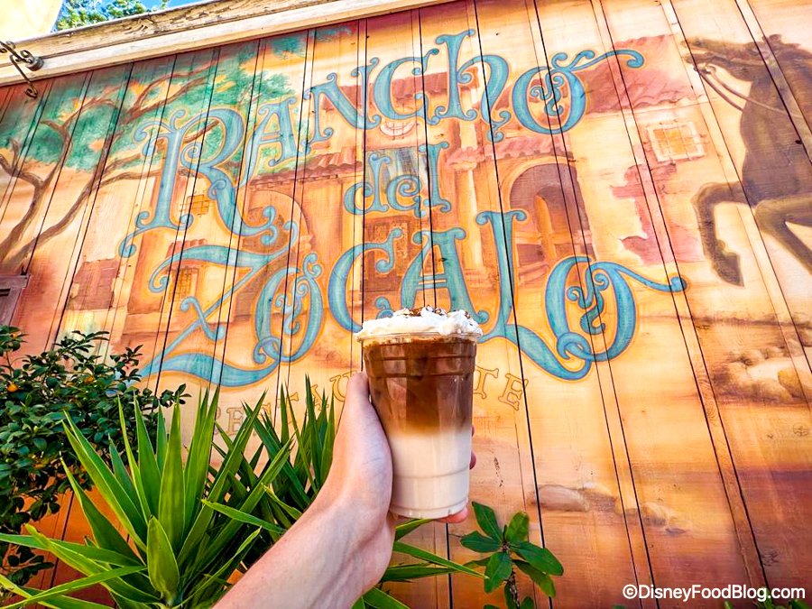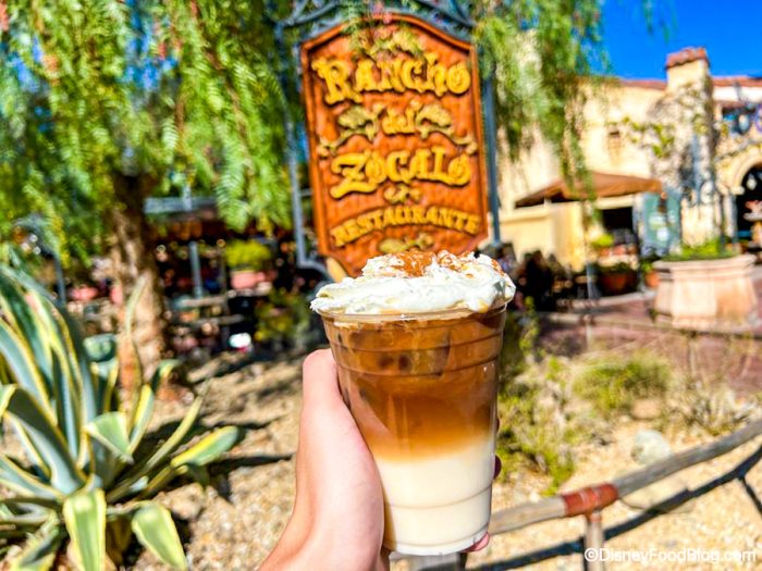 This is the new Horchata Cold Brew from Rancho del Zocalo in Disneyland Park! It’s iced horchata and cold brew topped with whipped cream and cinnamon.