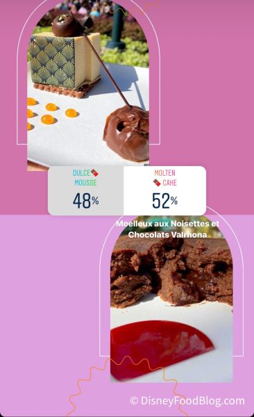 This next one was SUPER close — our readers narrowly picked the Moelleux aux Noisettes et Chocolats Valrhona: Molten chocolate and hazelnut cake from L’Art de la Cuisine Francaise over the Dulce Chocolate Mousse from Deco Delights.