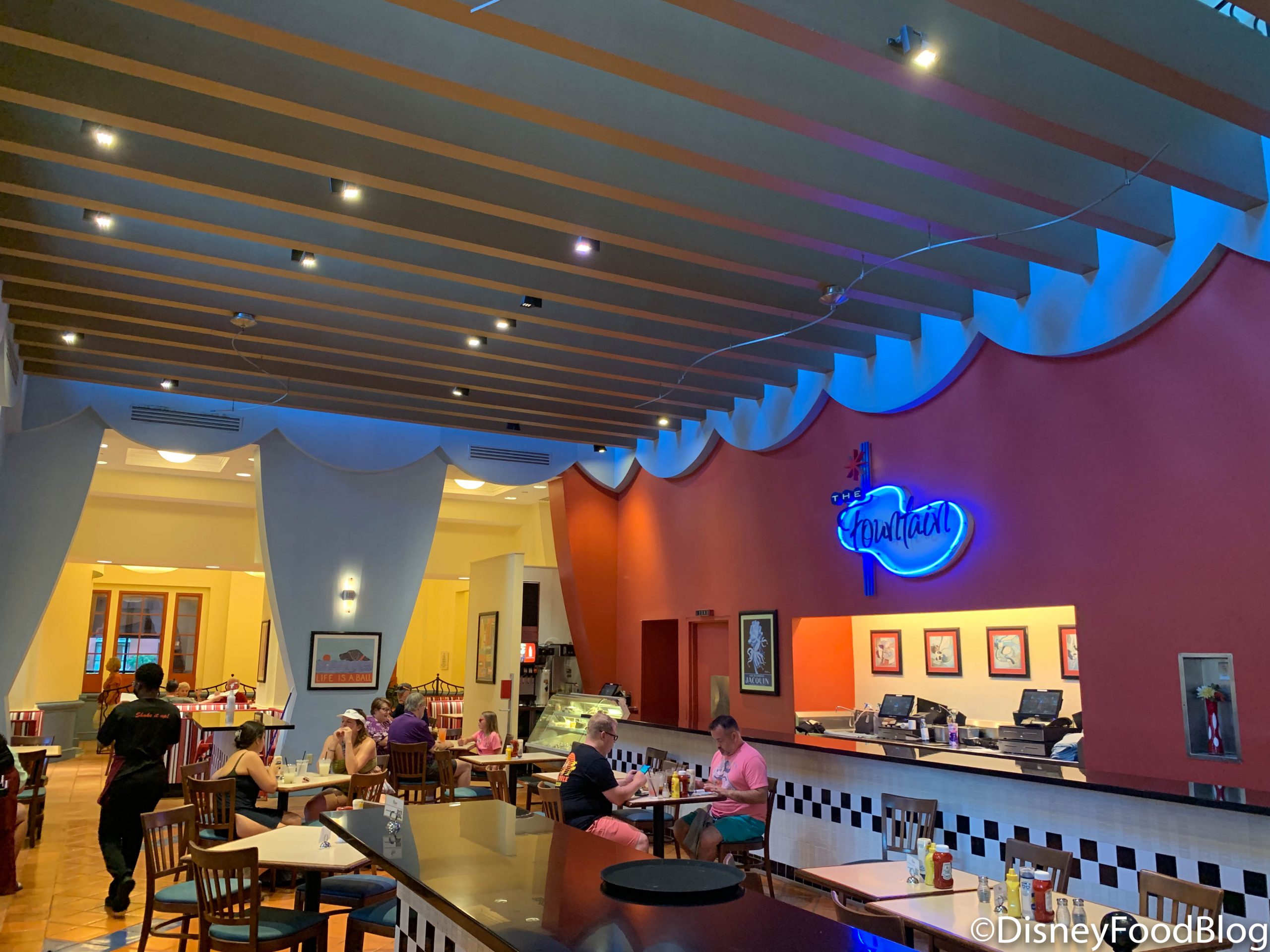 The Fountain over at the Walt Disney World Dolphin hotel is probably Disney World’s cheapest sit-down restaurant! It serves classic American diner food and the starters and shareables like Cheese Fries and Soft Pretzel Bites that run around $8.50.