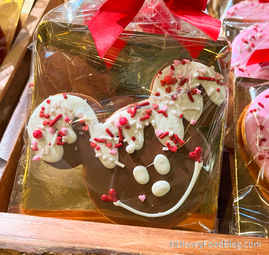 And in keeping with the Valentine’s Day theme, you can also pick up a Mickey-Shaped Valentine Cookie. And look at that smile on Mickey! This cookie is $9.