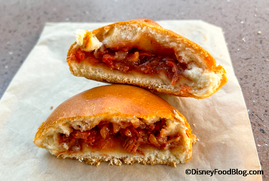 So let’s take a look at the Baked Char Siu Bao, which is a Chinese BBQ pork-filled baked bun. Okay, you’ve got our attention (like BAO is amazing, y’all). It’s served warm and that first taste gives you a sweet pork taste.