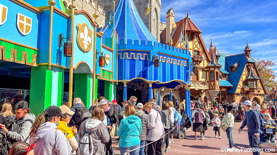 And finally, in EPCOT we noticed some long lines, too! The Seas with Nemo and Friends had a line extended all the way out of the building! But, the wait time around 1PM was only 10 minutes, so the crowds did die down.