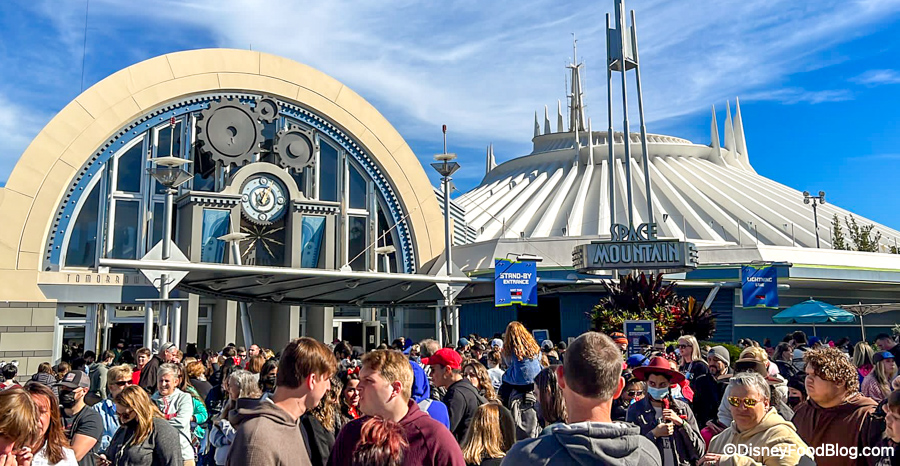 There was a very long line for Space Mountain, which was at an 80 minute wait around 1PM…