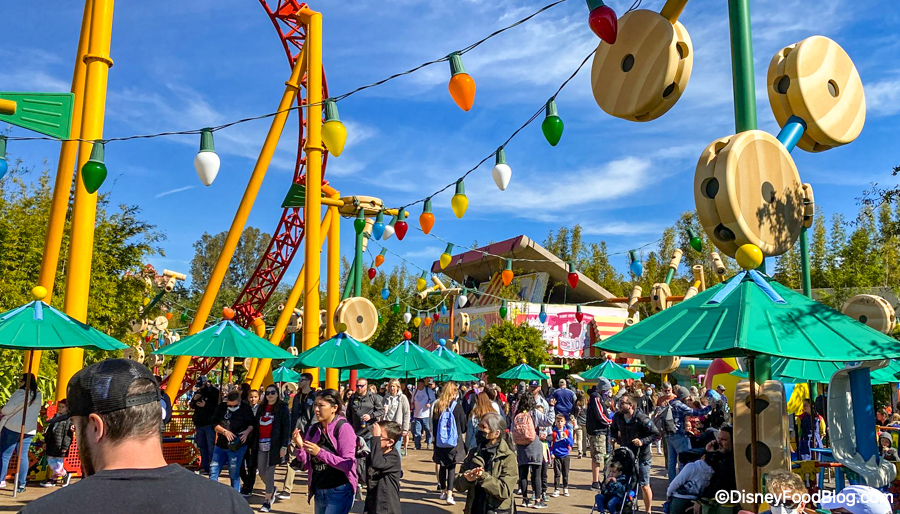 It’s crowded in Andy’s backyard — the wait time for Alien Swirling Saucers was 60 minutes and Toy Story Mania was at 70 minutes around 1PM.