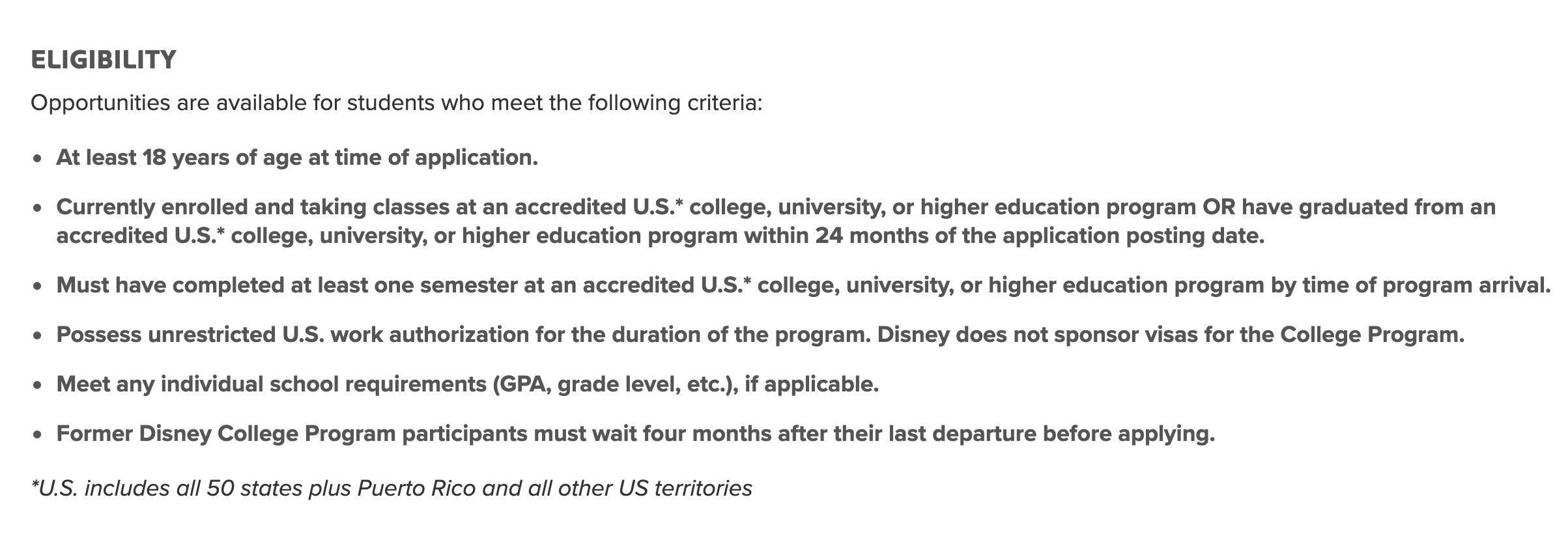 The Disney College Program is currently accepting applications for program arrival dates between May 2022 and October 2022, with departure dates beginning in January 2023. So how do you know if you’re eligible?