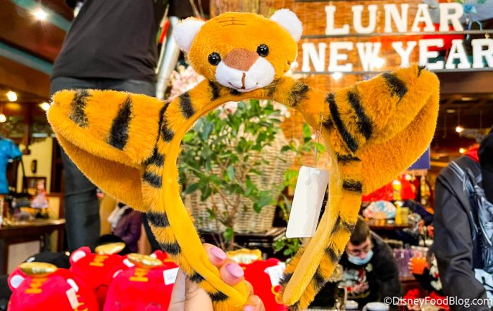Earlier this year, we found some gorgeous Lunar New Year Minnie Ears, which were red with embroidered flowers and pearl accents. But these aren’t the only ears you can find to celebrate the occasion now. Over in EPCOT, we spotted (er…striped?) some new Tiger ear headbands!