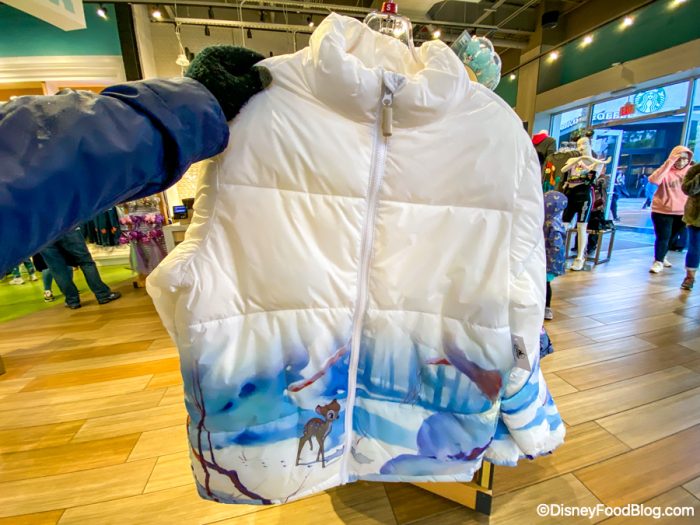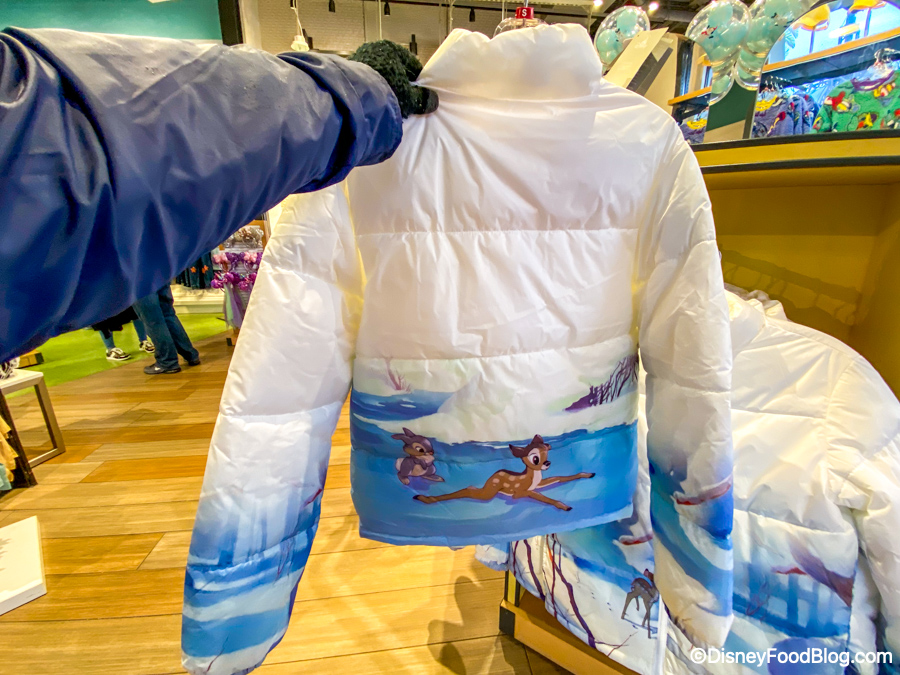 There are two new puffy coats in DisneyStyle! The first one has Bambi on it, frolicking in the snow.