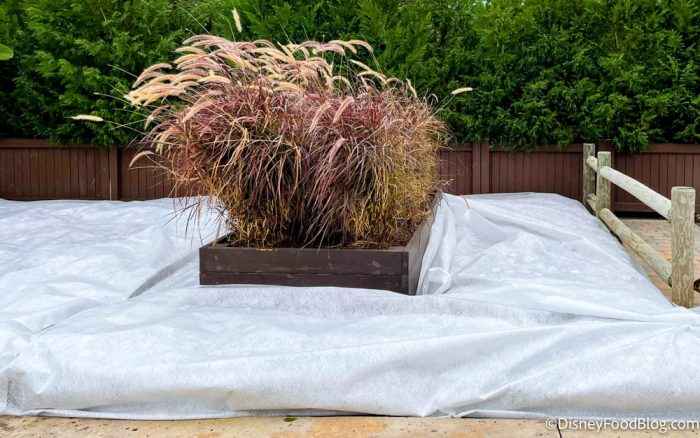 If you’ve been in Orlando lately, you probably noticed the chilly weather! Guests have been bundling up, and hot chocolate is available at a few snack stands around the parks. Another change that came with the cold is that EPCOT covered their flower beds to protect the plants in case of a nighttime frost.