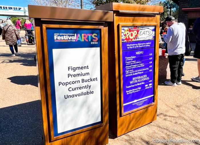 It’s not really a surprise that the very popular popcorn bucket sold out within a few days of the start of Festival of the Arts, since people waited in multi-hour long lines to get their hands on one.