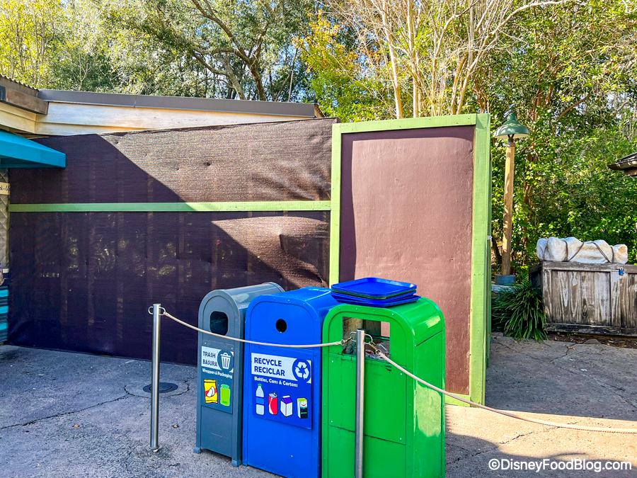 In DinoLand, there were tables outside again for guests to use near Dino-Bite Snacks. Although, it was pouring rain when we went by, so no one was using them! We’re guessing these are out now since the deck is unavailable and under construction.