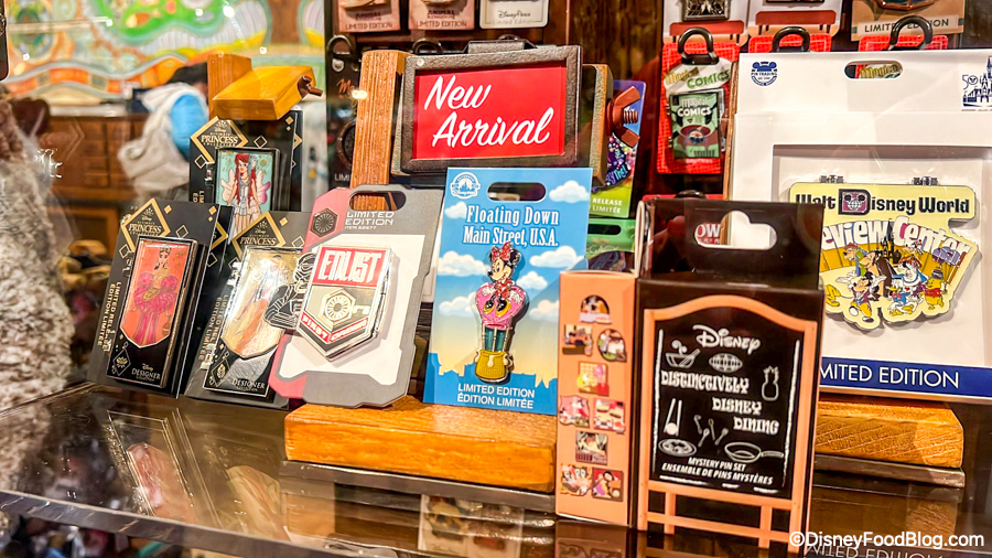 We also spotted some new pins in here! There’s a new Star Wars “Enlist” pin and a new Minnie Mouse Floating Down Main Street pin.