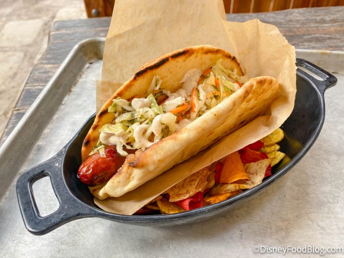 Remember allll the way back at the beginning when we talked about spring rolls? Well, there’s another one that you should try. The 50th Celebration Spring Rolls are a new flavor available at the Spring Roll Cart in Magic Kingdom’s Adventureland, and they have Pastrami and Pepper Jack Cheese inside, served with a Mustard Dipping Sauce.