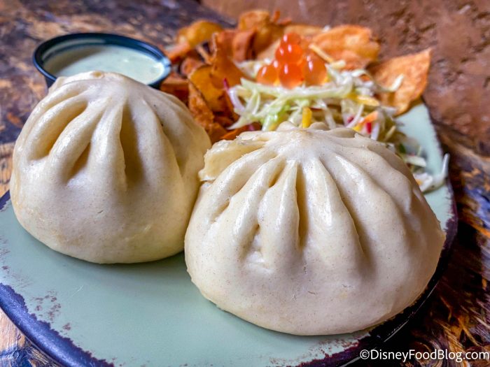 Why settle for any regular theme park burger when you can have your burger steamed in a pod!? It may sound a little different, but the Cheeseburger Steamed Pod at Satu’li Canteen in Disney’s Animal Kingdom is SO.GOOD. For $12.29, these little babies are stuffed with ground beef, ketchup, mustard, pickle, and cheddar cheese plus they come with a side of dipping sauce and chips.