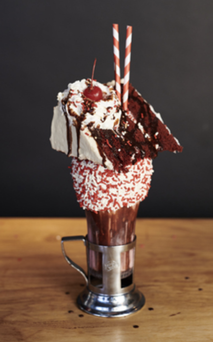 There will be an over-the-top Red Velvet CakeShake with a vanilla frosted rim, red and white sprinkles, and topped with a slice of red velvet cake, whipped cream, chocolate drizzle, and a cherry at Black Tap from February 12 through Valentine’s Day!