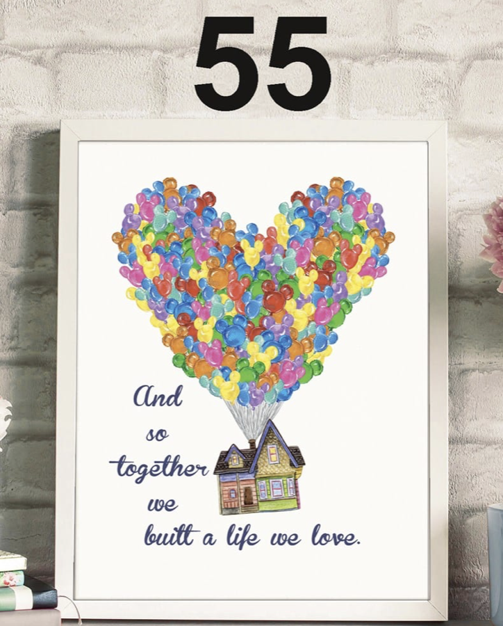 There is also this colorful print of the house from Up with its many balloons in the shape of a Mikey!