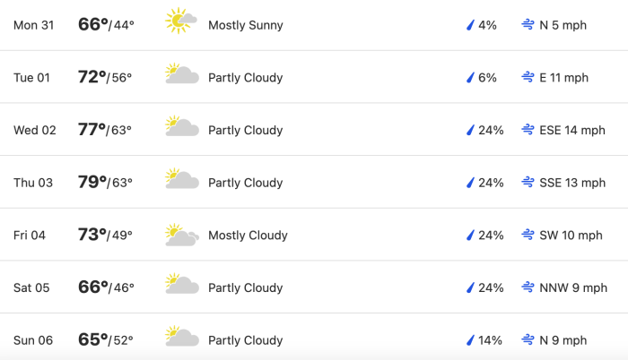 It might be a little windier, though, which could make a 70° day feel cooler!