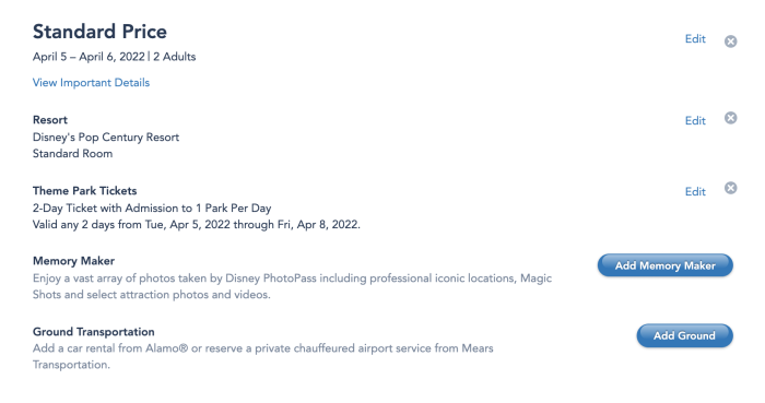 Ok just trying to make sure I’m getting this right. (Using the above example) if I add the SUV service to the package then I would be paying $250 for an SUV to take me round trip between MCO and Pop Century.