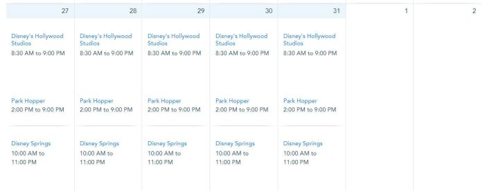 The park will then be open from 8:30AM-9PM from March 27th through the 31st.