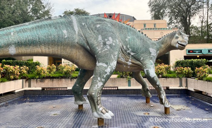 It looks like our friend Aladar could use a touch-up, so perhaps the fountain was drained to prepare for some painting!