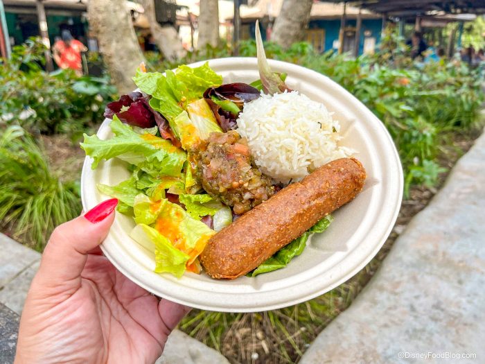 A little early lunch in Animal Kingdom 🦒 — Hot Link Bowl with plant-based “sausage” 🌿, cilantro rice 🍚, mixed greens and salsa pic.twitter.com/MwcQr2GxDH