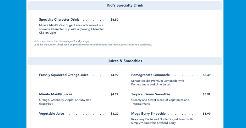 ale and compass breakfast menu 2022 disney’s yacht club resort kids drinks juices and smoothies By Sara McOmber Leave a Comment
