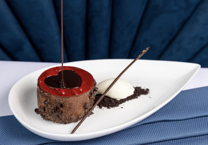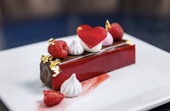 - Flourless Chocolate Cake: Flourless chocolate cake and dark chocolate crémeux with fresh berries, raspberry whipped cream, and raspberry méringue (New)