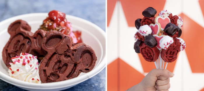 - Sweetheart Sundae: Mickey and Minnie red velvet waffle with strawberry and chocolate swirl, hot fudge, strawberry sauce, and whipped cream (available Feb. 9th — Feb. 20th) (New)