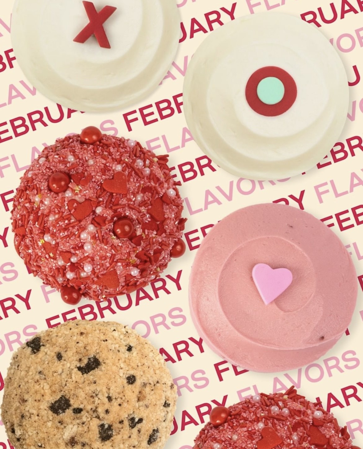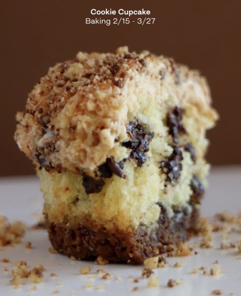 Next, even if you aren’t feeling in Valentine’s spirit, you still can enjoy one of their February releases with the Cookie Cupcake. If you’re a chocolate chip cookie lover, this one’s for you! And, since this one isn’t made just for Valentine’s Day, you’re able to get it until March 27th, but it won’t debut until February 15th.