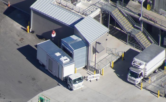 Follwing that arrow in the above picture, this is where guests will get on to a trasnport shuttle to be taken to Batuu from the Starcruiser. The trucks have a simulation inside, according to @bioreconstruct.