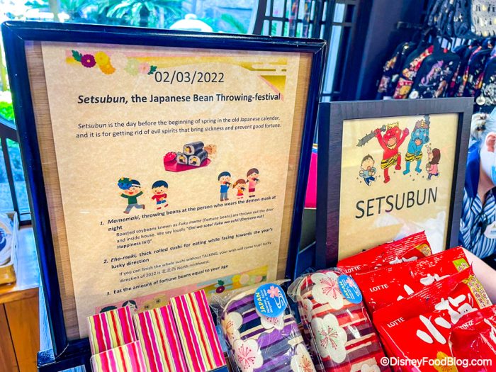 Inside Mitsukoshi in the Japan pavilion, Setsubun was being celebrated! This is the Japanese Bean Throwing-festival. It’s the day before the beginning of spring in the old Japanese calendar and it’s for getting rid of evil spirits that bring sickness and prevent good fortune.