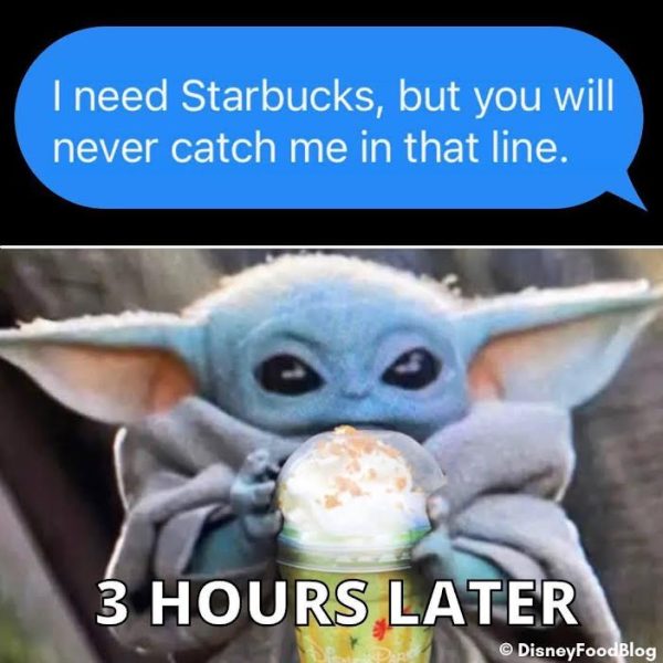 We come to Disney World expecting lines, but even for coffee?! Baby Yoda is all of us.