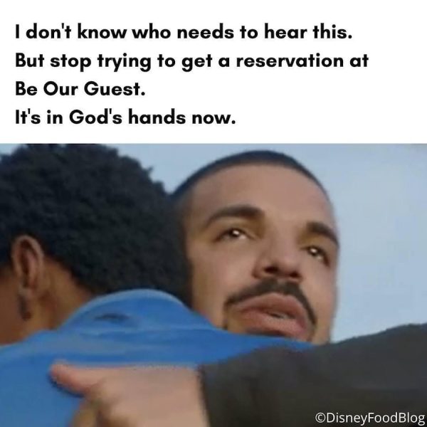 This one goes out to all the sweet, naive souls thinking they can finagle a last-minute res at Be Our Guest. We’ve all been there.