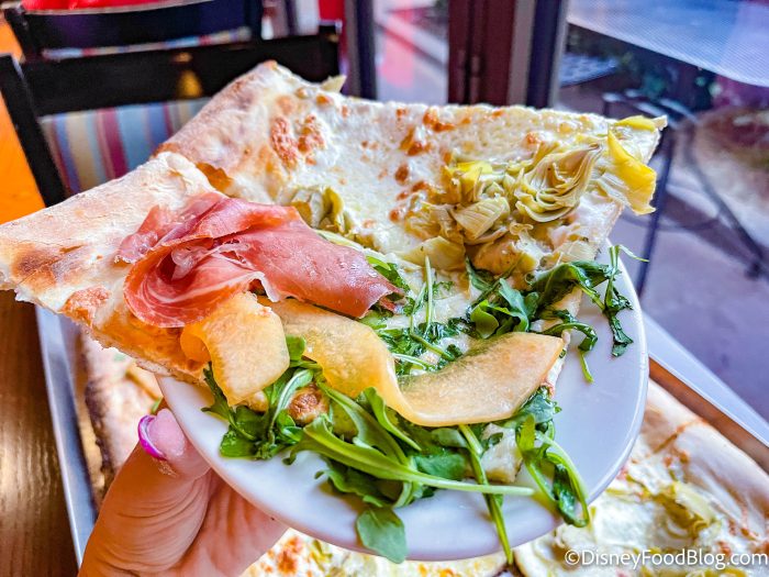 Overall, this was a phenomenal meal, but the pizza was definitely the highlight. We’d probably skip the appetizer and dessert next time to save stomach space and budget for other more unique EPCOT snacks. But, in our opinion, the pizza is a can’t-miss! There are several options for different tastes, so even if you don’t like the flavors we chose, you’ll probably find something you like.