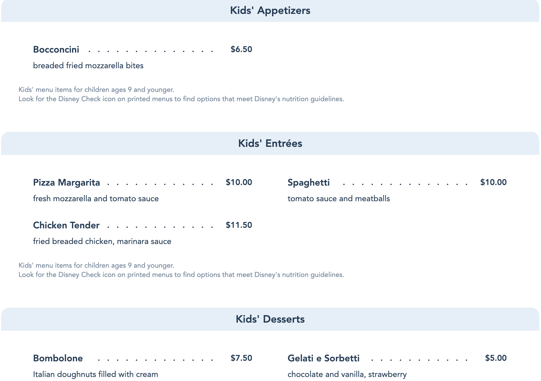 They didn’t forget about the kiddos either! Your little ones will have their own selection of appetizers, entrees, and desserts to choose from.