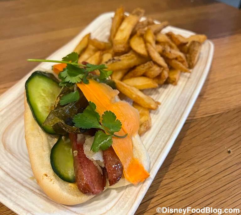 Looking for a quick meal at Disneyland Resort’s Grand Californian Hotel? Well then, GCH Craftsman Grill has you covered! This counter service spot is known for its relaxing atmosphere and variety of quick food options, including the Hot Dog of the Month. Craftsman Grill takes full advantage of the opportunity to showcase exciting flavors with this rotating menu item, and this month’s offering is no exception!