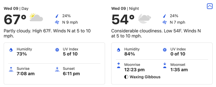 Keep in mind that the wind can really impact how it feels outside! Even on a sunny 67° day, the wind can make it feel much cooler.