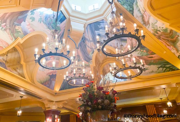 My significant other and I ate here about five years ago and had a great experience. Highlights include moving to an outside table (at cast members suggestion) and viewing the fireworks happening over the castle. As well as when I went to use the bathroom I walked past where the kitchen is hidden, to the left of the elevator exiting to go down if I remember correctly. A cast member was accessing that area and made a comment about magic in the walls or something because the whole wallpaper wall panel moved back for a secret entrance to this area. Super cool, great experience.