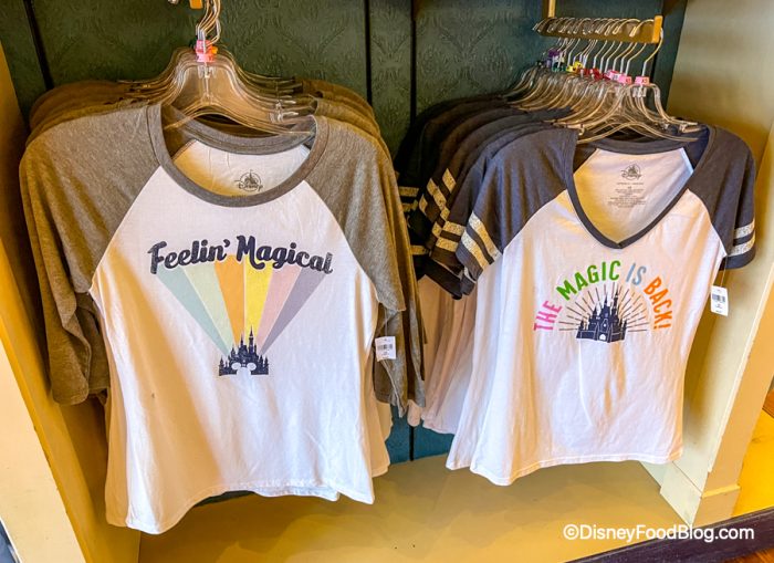 In Disney Clothiers, we found TWO new shirts, including The Magic Is Back top and a Feelin’ Magical tee!