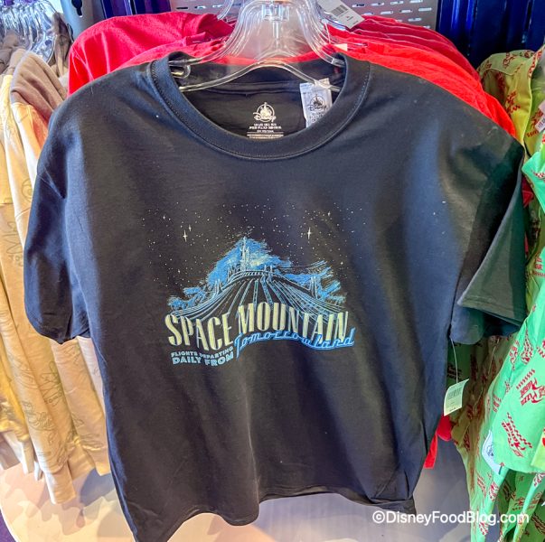 Next, we found some Tomorrowland attraction-themed shirts, like this Space Mountain shirt for $24.99!