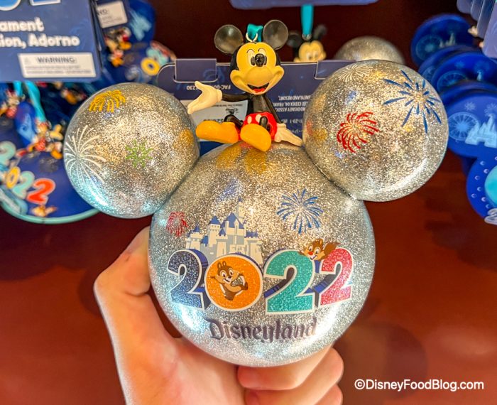 We also found some 2022 ornaments, including this silver Mickey-shaped glitter ornament for $26.99…