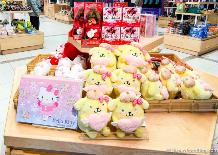 Inside Mitsukoshi (the gift shop in the Japan pavilion), we spotted a gorgeous Hello Kitty Tokidoki bag. It’s made with an iridescent material (like lots of 50th Anniversary decorations around the parks) with images of Hello Kitty and her friends. You can get this bag for $68.