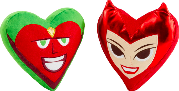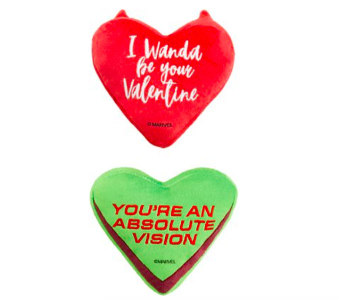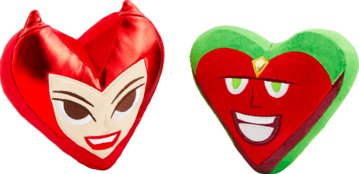 Starting off our list, there are a couple of heart-shaped squeaky toys that look like Scarlet Witch and Vision from Disney+’s Marvel series, WandaVision!