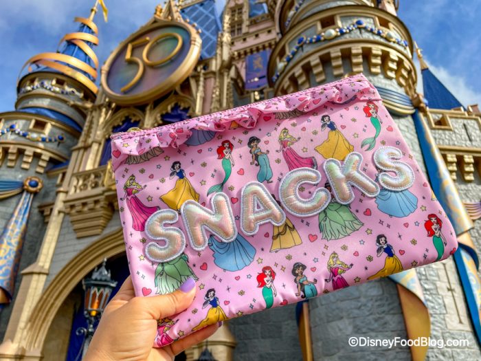 The fun thing about these bags are that they’re customizable! Ours says snacks (duh) in the Mickey Mouse letters, but you can customize yours to say what you want with a variety of different letter patches! There are also 4 other patterns in this collection, which you can check out here.