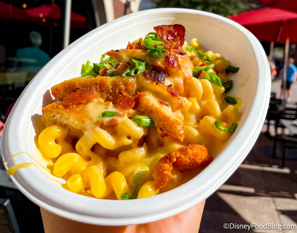 A highlight for us is always the fun sauces, and the loaded mac ‘n’ cheese is delishhhhh (trust us on this one!)! The prices are very reasonable (especially compared to other dishes in Disney Springs), so this is a good place to visit if you’re traveling on a budget.