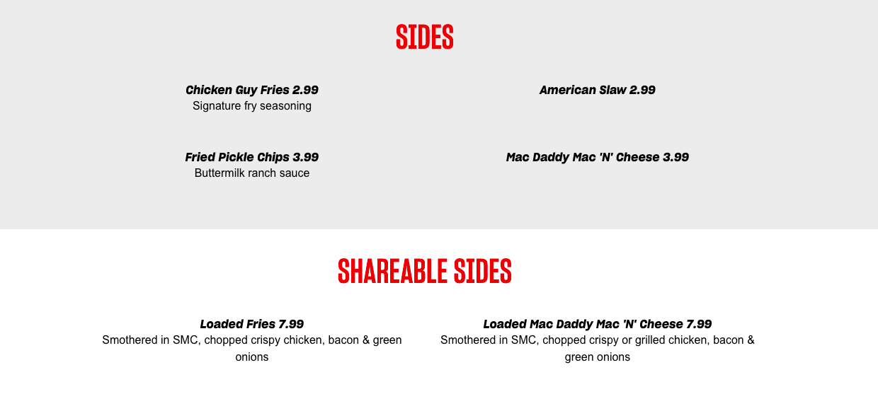 - Special Sauce — which is described as having mayo, ketchup, mustard, pickle juice, and Chicken Guy! special spices and seasoning (it’s under the Guy! Favorite category)