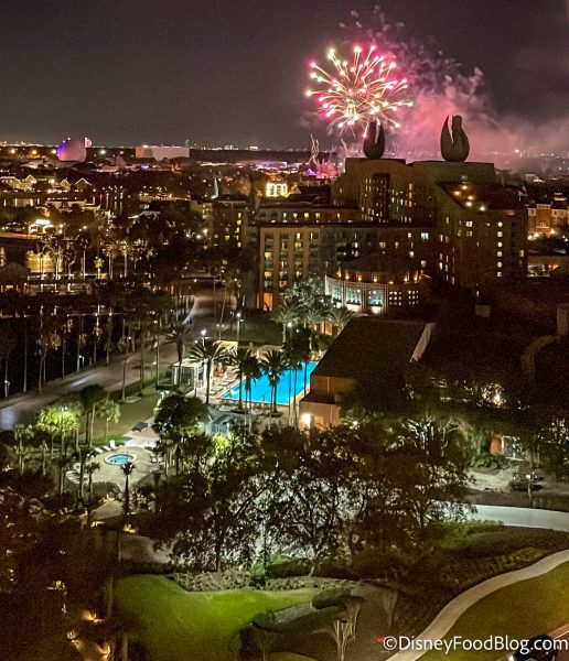 You can see EPCOT and Hollywood Studios from the top floor. Can you spot Spaceship Earth?